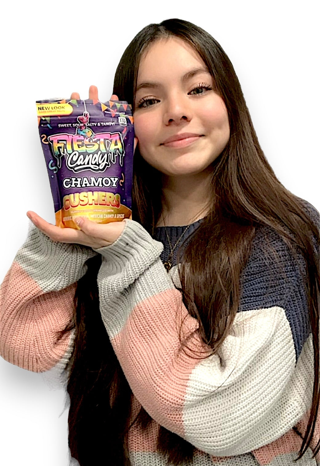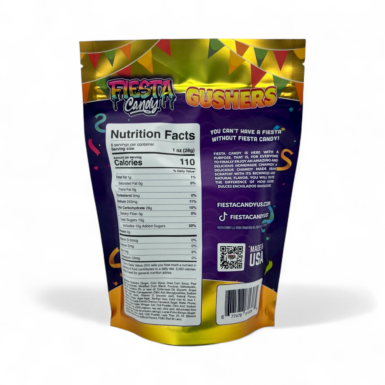 Fruit Gusherz smothered with our homemade Fiesta Candy Chamoy and sprinkled with our special spice!